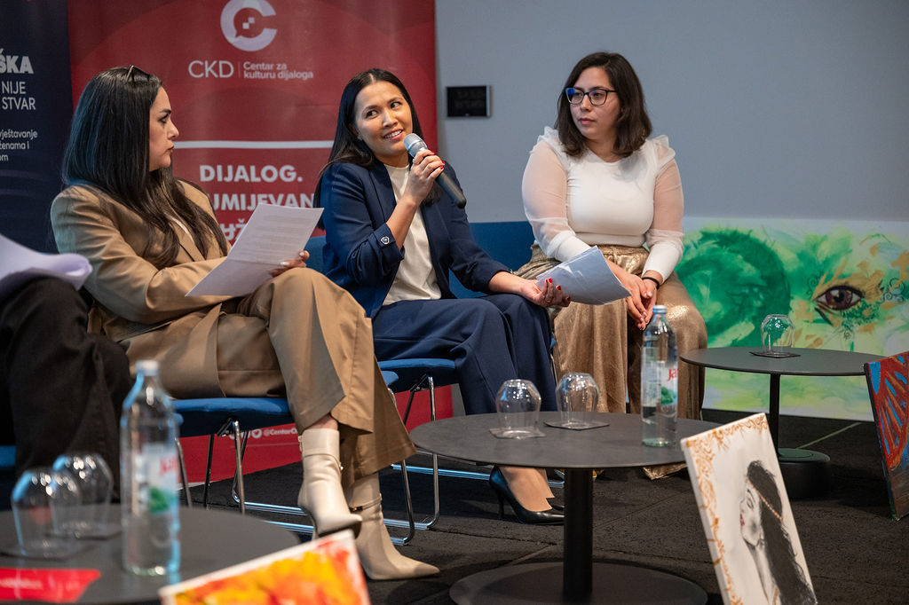 Forum je obuhvatio dva tematska panela. Prvi panel, „Žene danas: prava, sigurnost i odgovornost društva u međunarodnom kontekstu“, moderirala je Nejra Kadić Meškić, izvršna direktorica CKD-a. Tijekom rasprave, otvorena su pitanja položaja žena u različitim društvenim i kulturnim kontekstima, pri čemu je poseban osvrt bio na iskustva iz zemalja poput Rusije, Irana i Filipina. Panelistice su kroz osobne priče ukazale na izazove i predrasude s kojima se žene susreću diljem svijeta, ali i na različita poimanja slobode. Upravo zbog sličnih iskustva u različitim kontekstima, istaknuta je važnost solidarnosti i međusobnog razumijevanja. Gošće panela bile su E.S, Maryam Goudarz, Talita Jašarevski i Vida Kličko.
